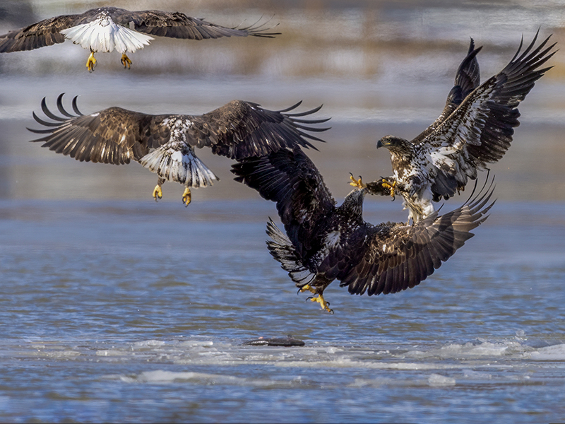 Rumble in the jungle---which eagle gets the fish?