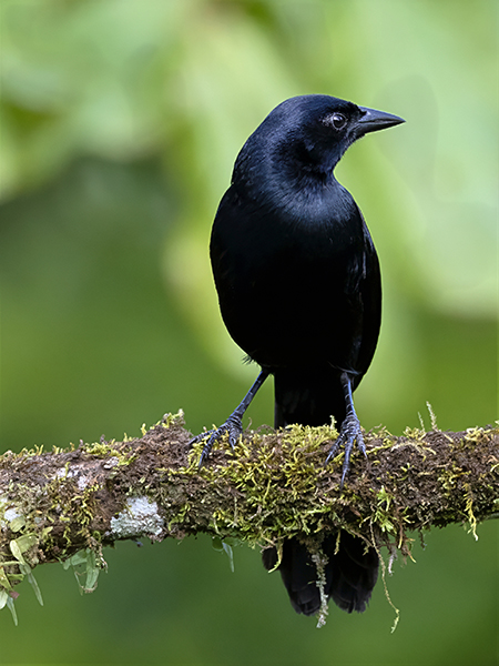 Adult plumage is entirely black with a bluish tinge.