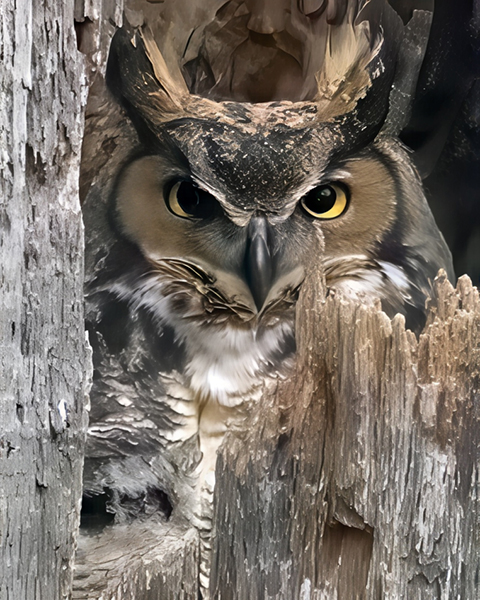 Super focus rendition of a female greay horned owl.