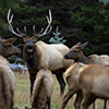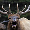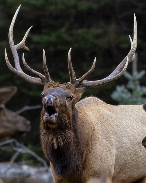 A bull vocalizes in a loud, high-pitched whistle known as "bugling".