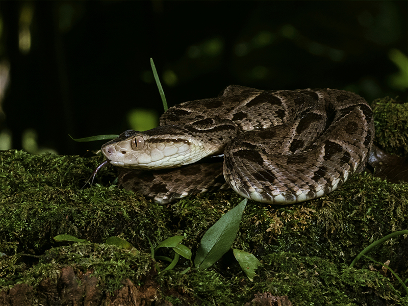 Its potent venom yield gives this pit viper its fearsome reputation.