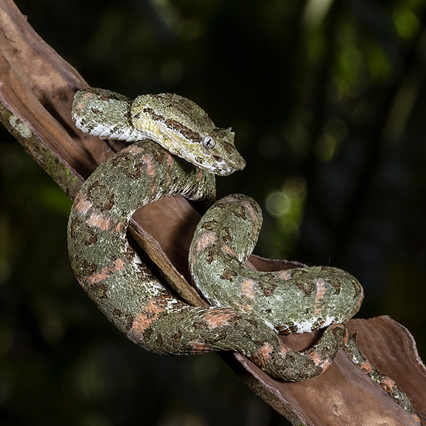 These snakes use their prehensile tail to grip branches.
