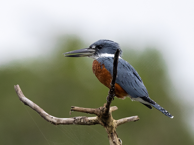 Large, noisy,steely-blue and chestnut colored kingfisher.