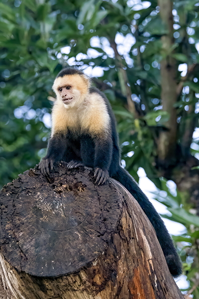 A long, powerful tail lets the capuchin hang from a branch to gather fruit.